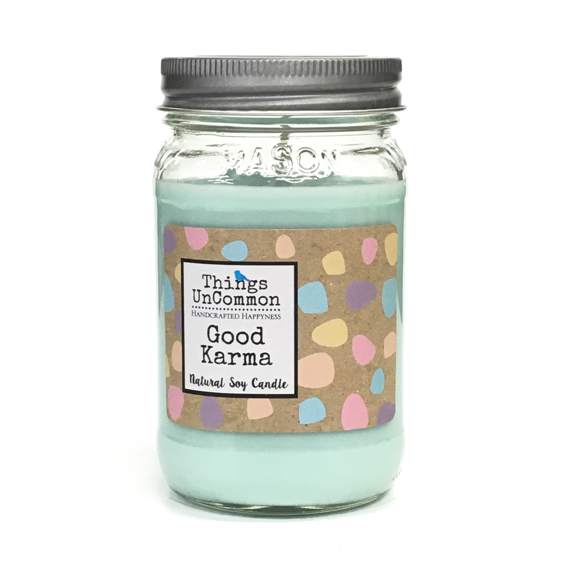 16 oz. candle made of 100% US-grown soy wax with highest quality essential and fragrance oils, with a 100% cotton wick, for a clean and extra-long burn time.