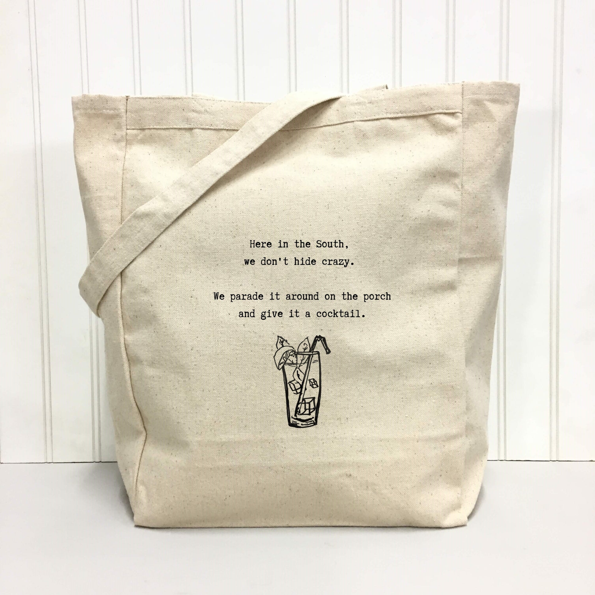 This 100% cotton tote bag is a fun way to stay organized and keep your hands free!